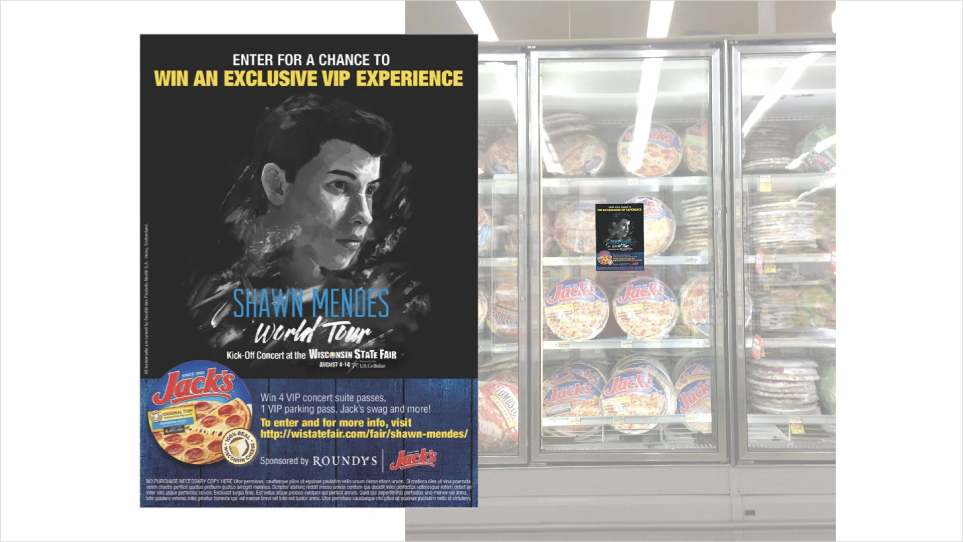 Midwest heritage, gatherings of friends and family, and summer fun are something the Wisconsin State Fair and Jack’s pizza have in common. With the upcoming world tour of the heart-throb celebrity singer, Shawn Mendez, Jack’s Pizza wanted to create a memorable experience for the Midwest locals. Working with a lean budget, my team and I had to get creative with existing resources and find low production costs.